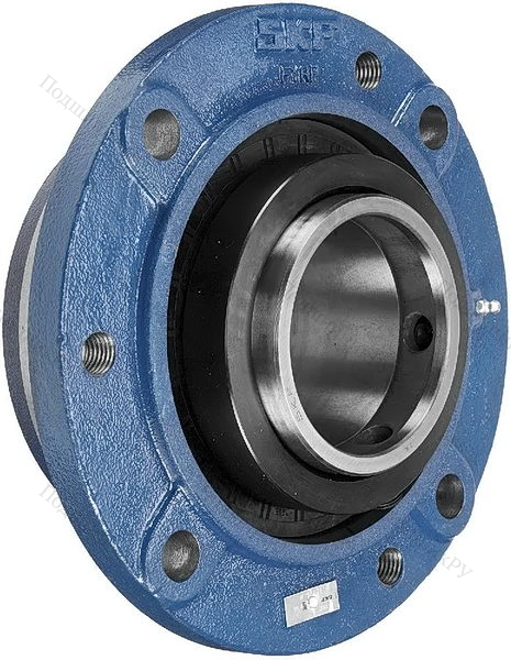 Фланцевая гильза из чугуна или стали оснащена корпусным радиальным шарикоподшипником UC-серии, имеющим внутреннюю обойму удлиненного вида и винтовой стопорной крепеж. Монтаж детали осуществляется методом подгонки.