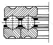 Подшипник шариковый упорный 738722Л в конструкцию которого входит свободная внешняя и тугая внутренняя шины (последняя жестко фиксируется на валу), сепаратор и заключенные в нем тела качения. При наличии двух рядов шарикоподшипников изделие комплектуется парой сепараторов. Может иметь подкладную обойму.